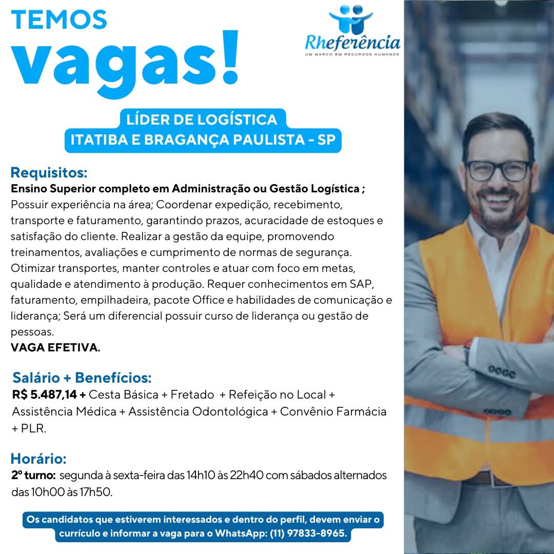 Vaga de analista de líder de Logística com salário R$ 5.487,14 + Benefícios