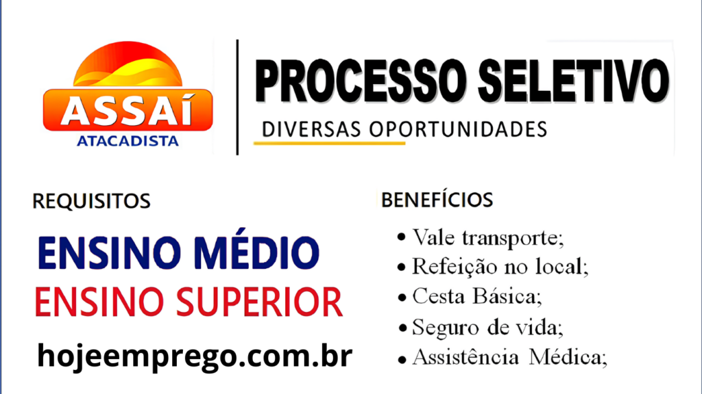 Receba vagas em seu WhatsApp! Observação: O Hoje Empregos atua apenas como um intermediário entre empresas e candidatos, não participando do processo seletivo e não cobrando qualquer taxa de nenhum candidato. Fique atento(a) a possíveis tentativas de golpes: NUNCA PAGUE ou forneça dados pessoais para obtenção de um CURSO, EMPREGO … Continue lendo Trabalhe Conosco Assaí Atacadista: Como se Candidatar, Benefícios e Dicas para se Destacar