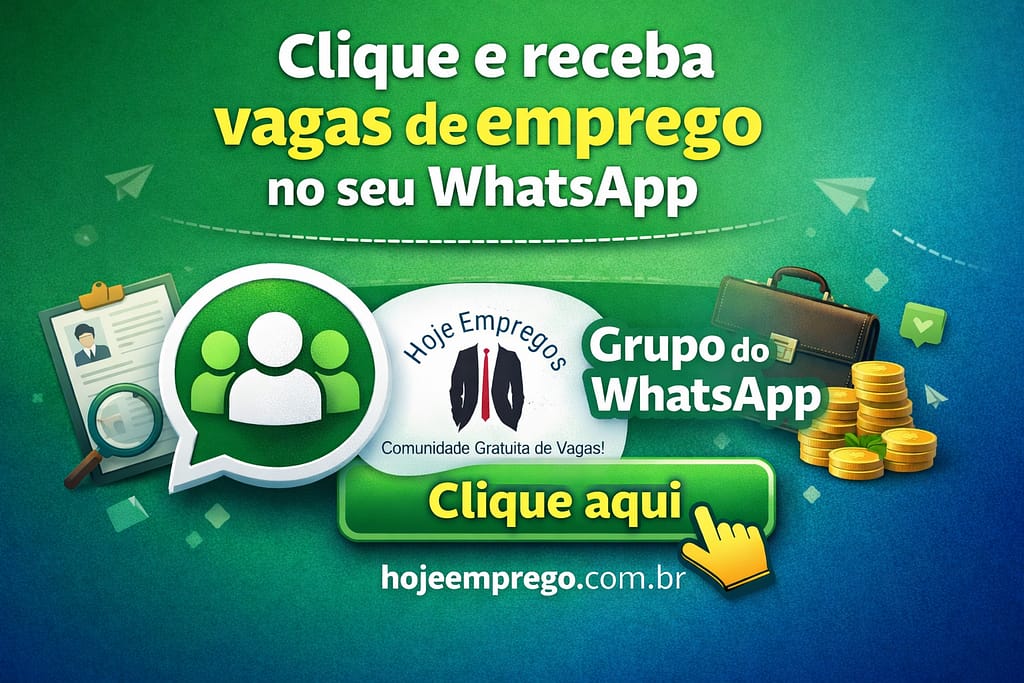 Receba vagas em seu WhatsApp! Observação: O Hoje Empregos atua apenas como um intermediário entre empresas e candidatos, não participando do processo seletivo e não cobrando qualquer taxa de nenhum candidato. Fique atento(a) a possíveis tentativas de golpes: NUNCA PAGUE ou forneça dados pessoais para obtenção de um CURSO, EMPREGO […]