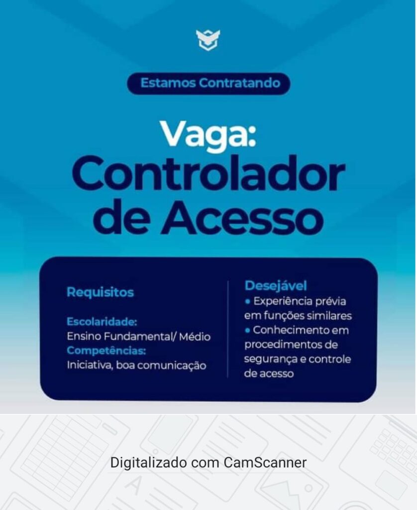 Estamos com vaga aberta para a função de Controle de Acesso!