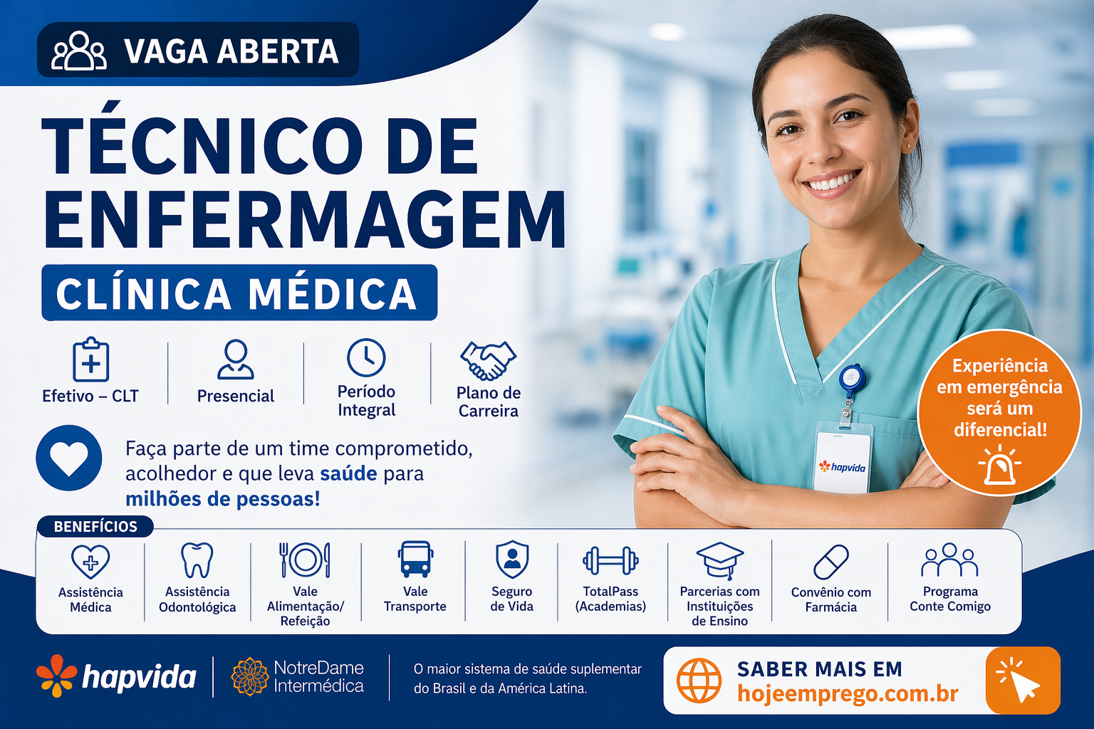 Se você está em busca de uma oportunidade na área da saúde, essa pode ser a sua chance! O Hapvida NotreDame Intermédica, considerado o maior sistema de saúde suplementar do Brasil, está com vaga aberta para Técnico de Enfermagem – Clínica Médica na região do ABC Paulista.