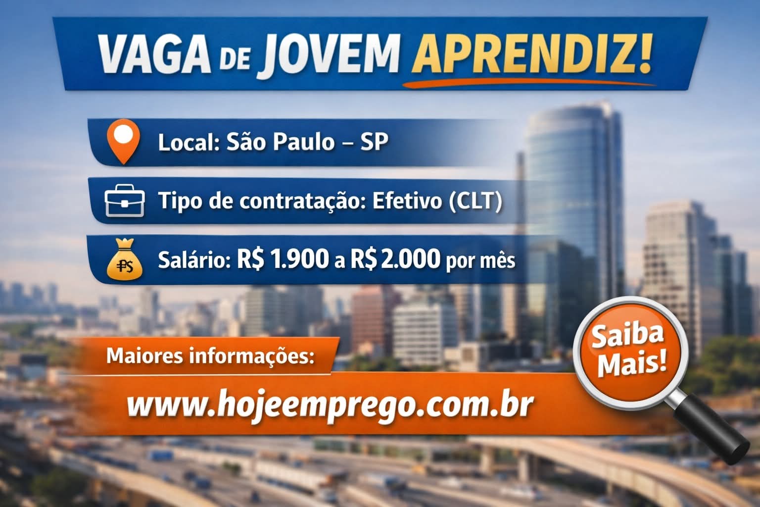 Jovem Aprendiz em São Paulo: oportunidade com salário de até R$ 2.000